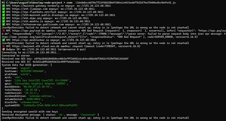 We see it making connections to RPC at multiple different Ethereum Wallet Endpoints. It also gathers host enumeration details as defined earlier in the code review.